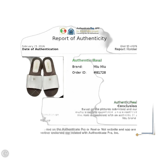 Sandals Luxury Designer By Miu Miu In White, Size: 11