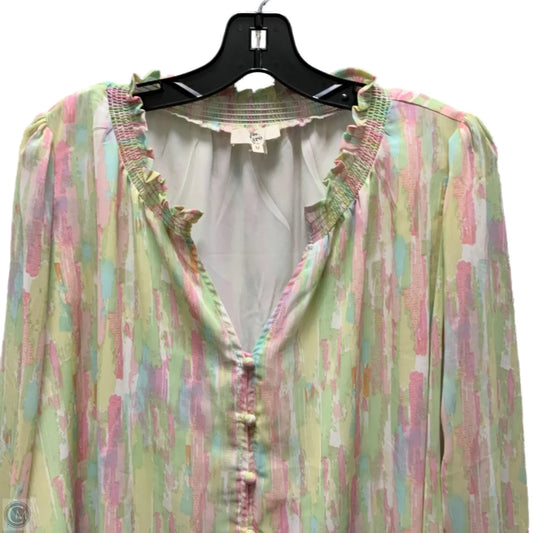 Blouse Long Sleeve By Entro In Green & Pink, Size: M