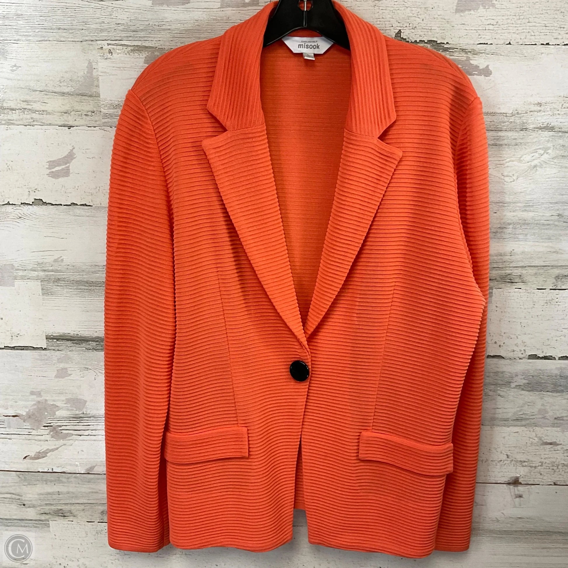 Introducing the Misook Orange Jacket in Size L - a statement piece blending elegance and comfort for a sophisticated look.