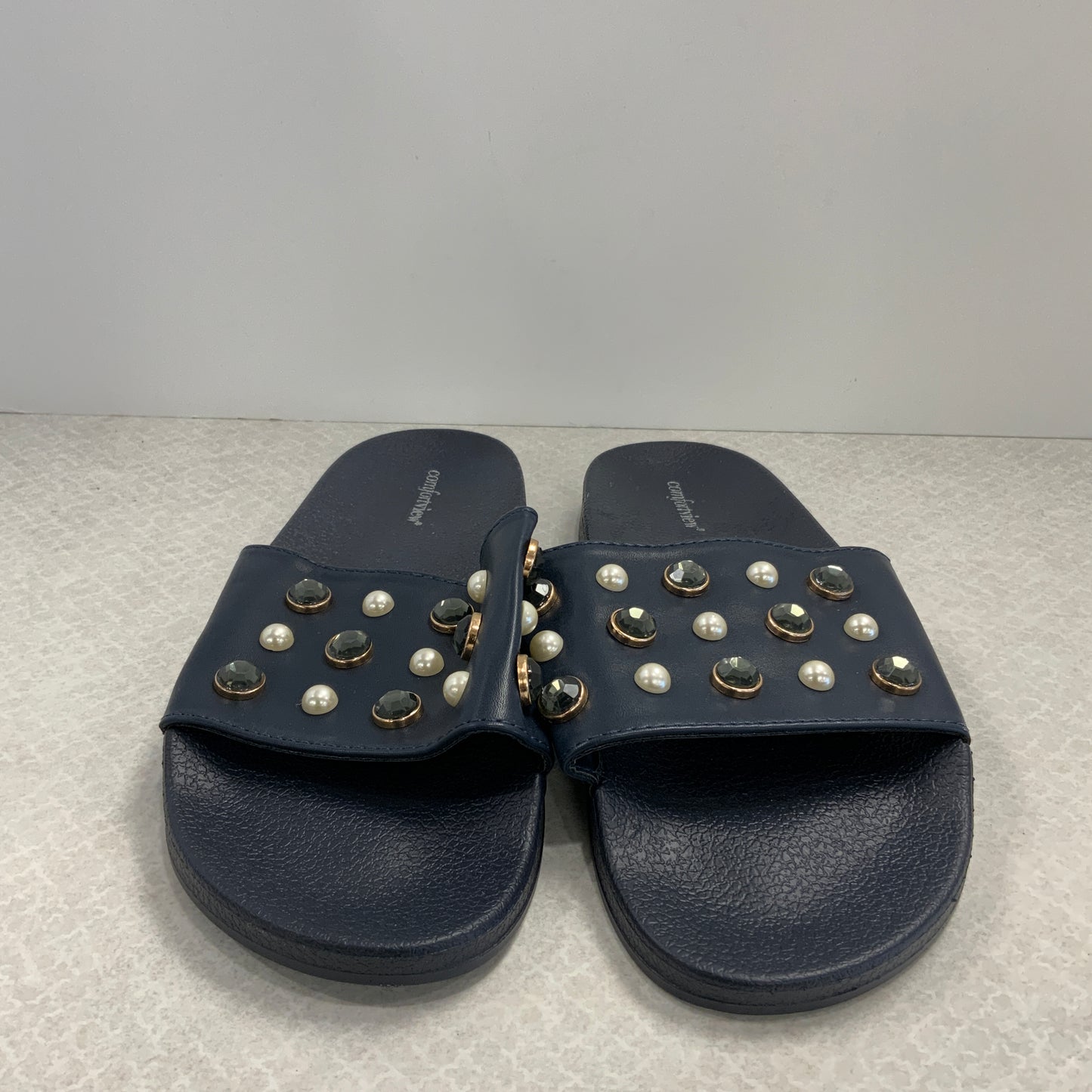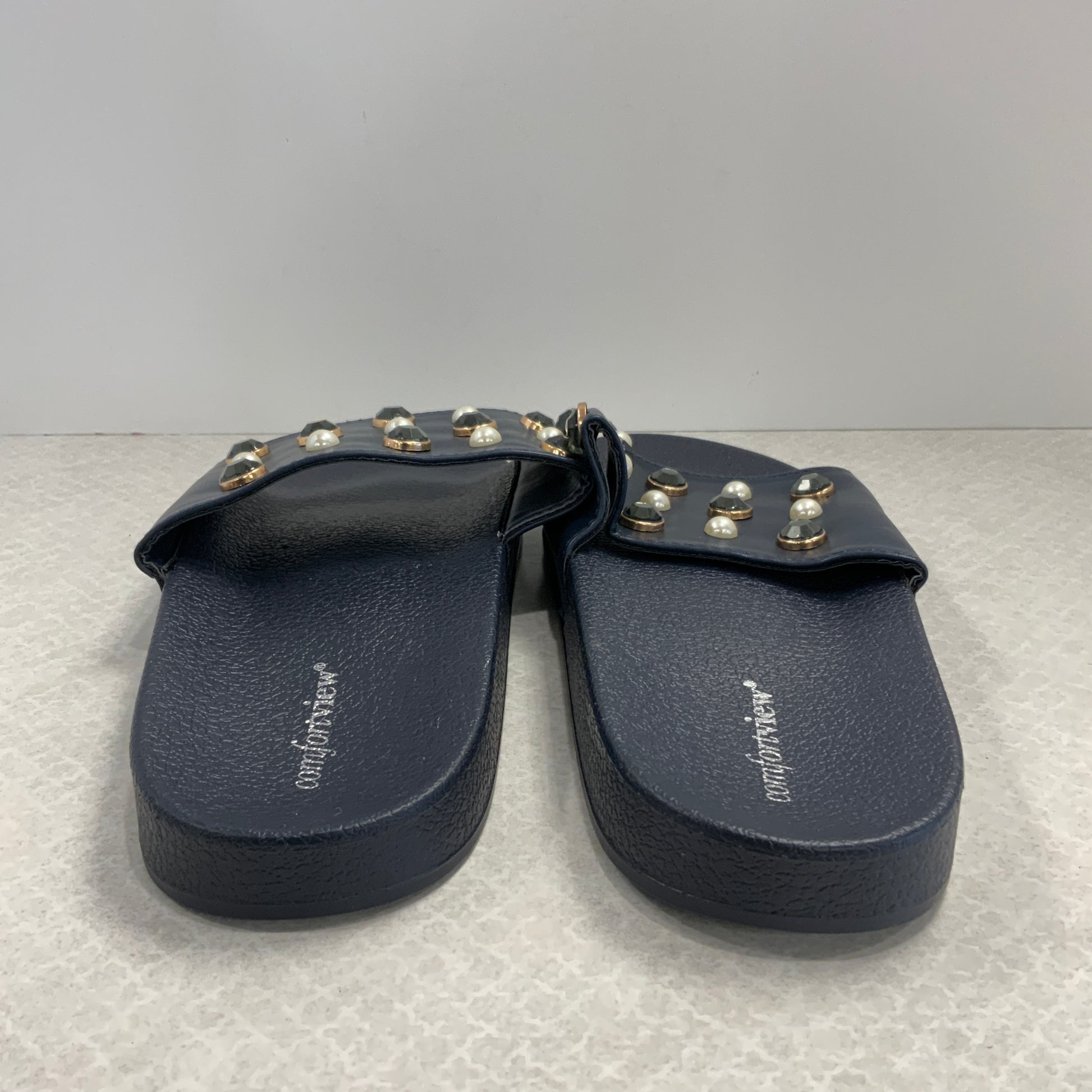 Navy Sandals Flats Comfortview, Size 10
