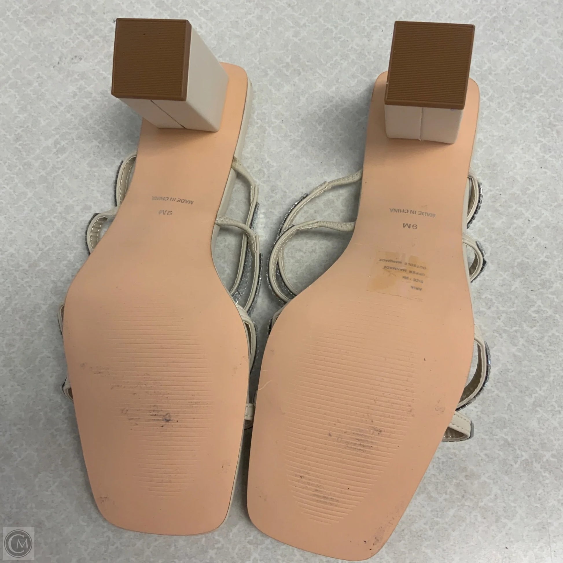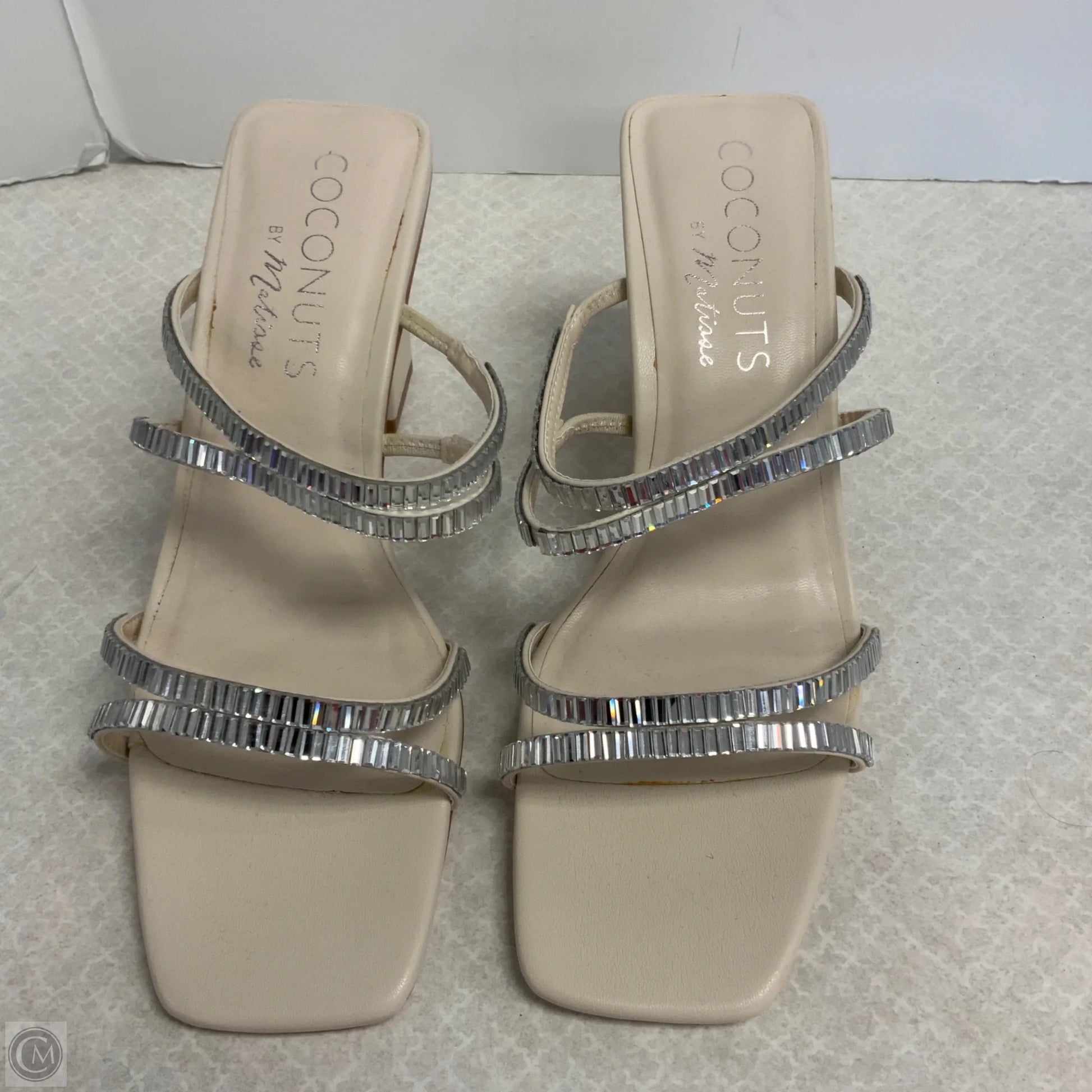 Sandals Heels Block By Coconuts In Cream & Silver, Size: 9