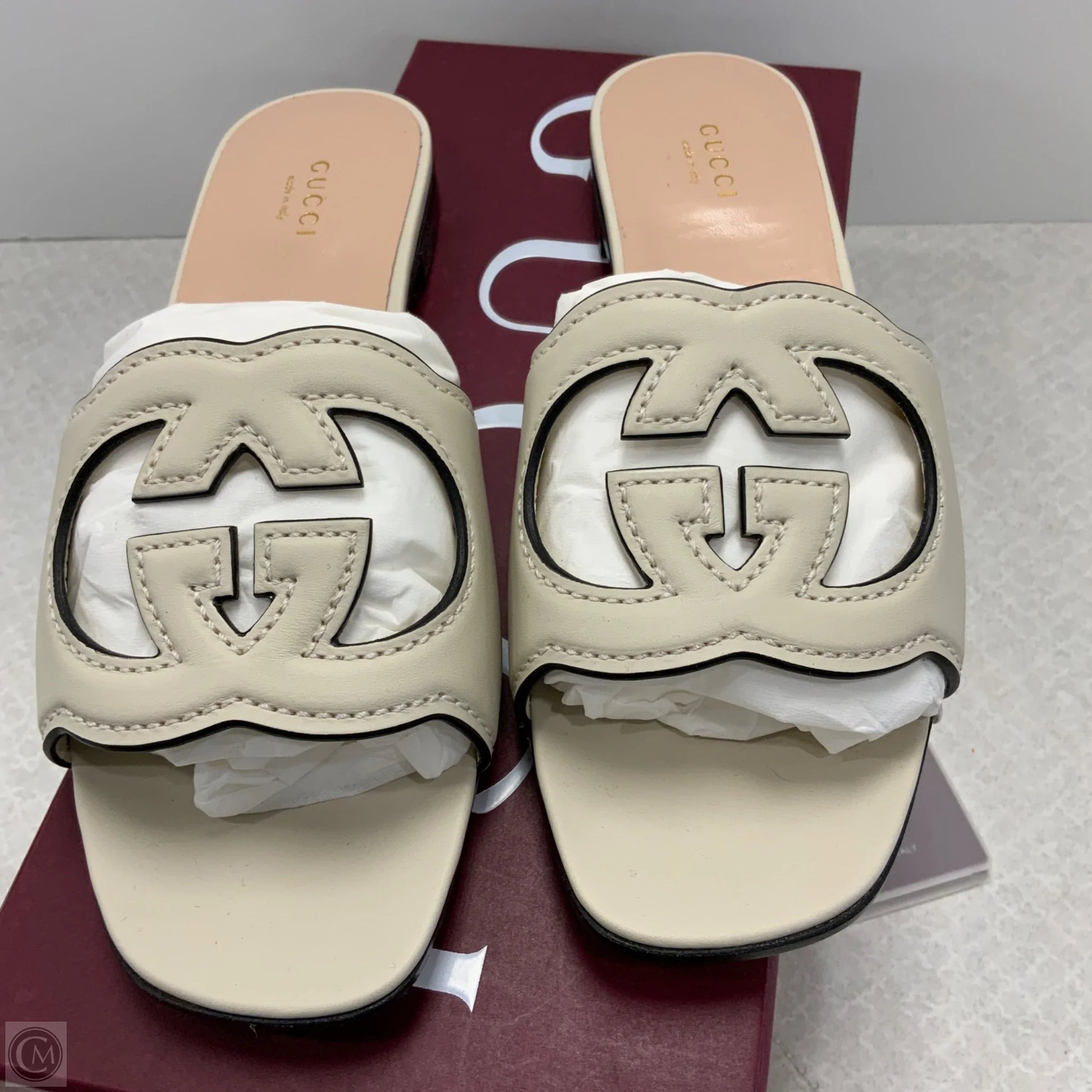Shoes Luxury Designer By Gucci In Cream, Size: 8.5