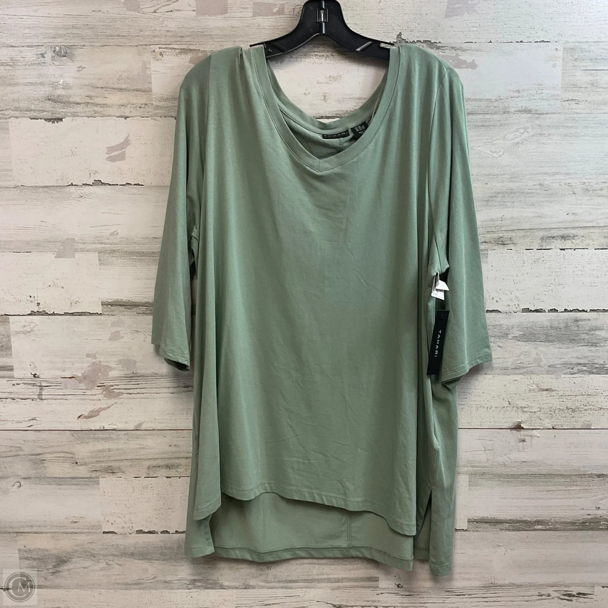 Top 3/4 Sleeve Basic By Tahari In Green, Size: 2x
